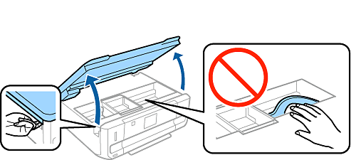 1 インクカートリッジセットの案内が表示されたら、スキャナーユニットを開けます。