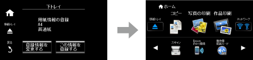 6 操作パネルに表示された用紙サイズと用紙種類を確認して、[この情報を登録する]を押します。