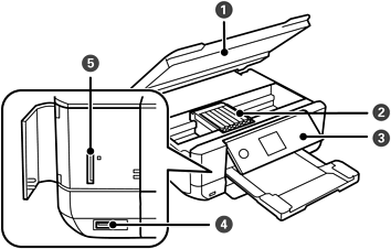 原稿をスキャンします。インクカートリッジの交換や内部に詰まった用紙を取り除くときに開けます。通常は閉めておいてください。