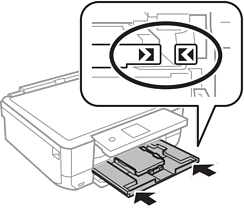 右側の用紙ガイドを動かして、用紙の側面にガイドを合わせます。