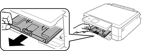 プリンターが動作していないことを確認して、上トレイを引き抜きます。上トレイには目印