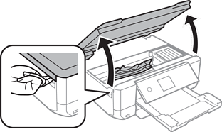 原稿カバーを閉めた状態で、スキャナーユニットを開けます。