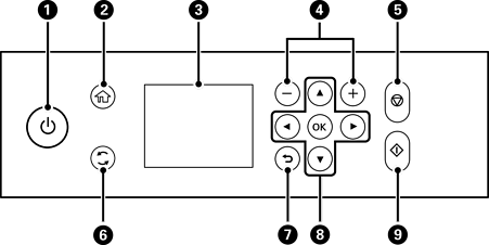 操作項目やメッセージを表示します。見やすいように操作パネルの角度を調整してください。 一定の時間以上操作しないとスリープモードになり、表示が消えます。いずれかのボタンを押すと復帰します。 |