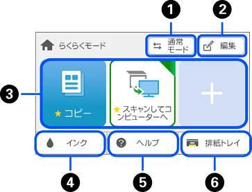 [ヘルプ]画面を表示します。困ったときの対処方法やプリンターの基本操作手順が確認できます。 また、プリンターが故障したときは、「お客様診断シート(3枚)」を印刷し、1枚目と2枚目に必要事項を記入してください。3枚目のノズルチェック結果と共にプリンターに添付すると、修理がスムーズです。 |