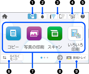 [ヘルプ]画面を表示します。困ったときの対処方法やプリンターの基本操作手順が確認できます。 |