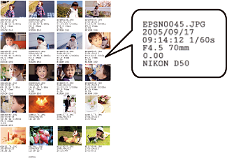 撮影日時やシャッタースピードなどのExif情報と共に写真を一覧印刷し、撮影時の情報を確認しながらベストショットが選択できます。