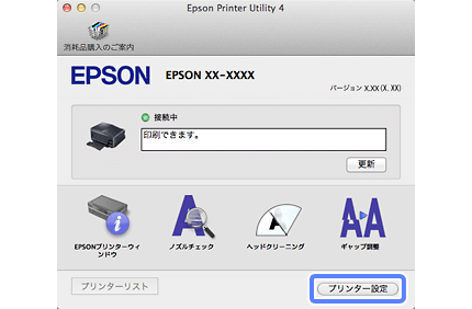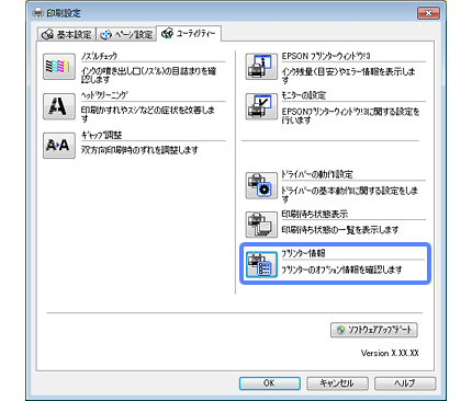 [プリンタユーティリティを開く]をクリックしてEpson Printer Utilityを表示させます。