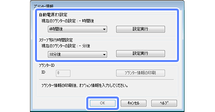 [プリンター情報]画面で、各項目を設定して[OK]をクリックします。