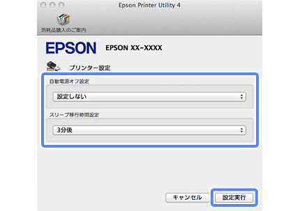 自動で電源を切る時間や、スリープ動作に移行する時間などを設定します(対応機種のみ)。