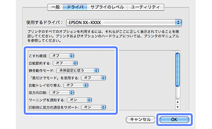 [ドライバーの動作設定]画面で、各項目を設定して[OK]をクリックします。