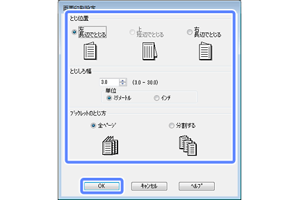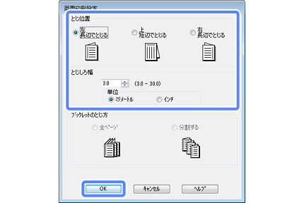 アプリケーションソフトによっては設定値と実際のとじ位置が異なることがありますので、試し印刷をお勧めします。