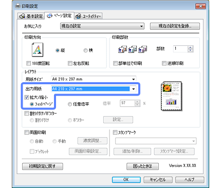 出力用紙に合わせて自動拡大/縮小(フィットページ)