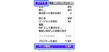 [ファイル]メニューの[ページ設定](または[用紙設定]など)をクリックしてください。
