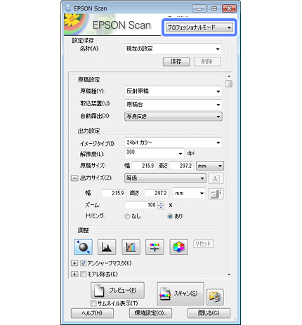 画質などを詳細に調整してスキャン(プロフェッショナルモード)