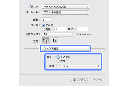 [ファクス設定]メニューを選択して、各項目を設定します。