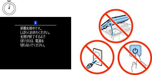 充填が終了するまで電源を切ったりスキャナーユニットを開けたりしないでください。インク充填が終了するとホーム画面が表示されます。