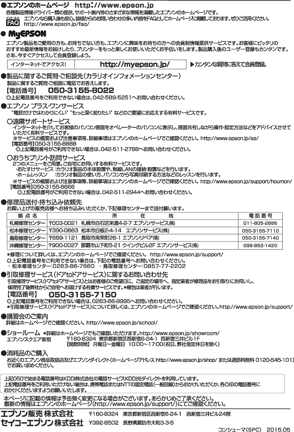 エプソンのホームページ: http://www.epson.jp