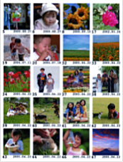ホーム画面で[写真の印刷]を選択します。[メニュー]を押し、[全ての写真をインデックス印刷]を選択して、必要に応じて設定を変更して印刷します。