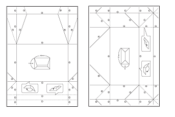 印刷した封筒展開図の上に折り方シートを重ね合わせ、折り方シートの折り順と折り線に従って折ります。