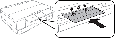ディスクトレイをプリンターに挿入します。プリンター側とトレイ側のマークを合わせてください。