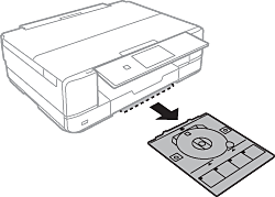 印刷する面を上にして、ディスクトレイにディスクを載せます。ディスクの中央付近を押さえてセットしてください。