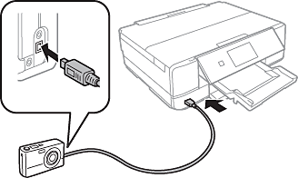 デジタルカメラの電源を入れてから、USB ケーブルでプリンターと接続します。