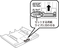 用紙ガイドを動かして、用紙の側面にガイドを合わせます。