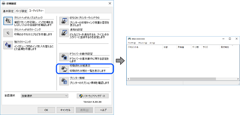 プリンタードライバーの[ユーティリティー]タブで[印刷待ち状態表示]をクリックします。