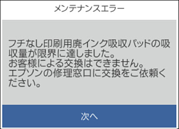 以下の画面が表示されたときは、お客様による交換はできません。エプソンの修理窓口に交換をご依頼ください。
