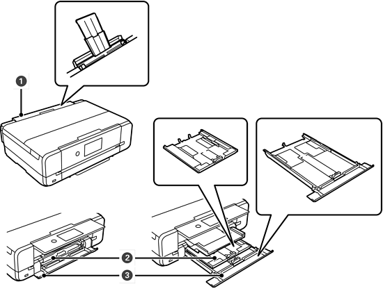 本製品は3つの給紙装置があります。用紙サイズや印刷用途に合わせて用紙をセットしてください。