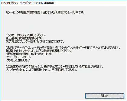 • 以下の画面が表示されたら印刷を中止し、再度印刷してください。