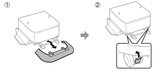 Antes de deslocar a impressora, desinstale os apoio do armário. Complete os passos indicados em Preparar a impressora para transportar e, a seguir, realize os passos das imagens abaixo.