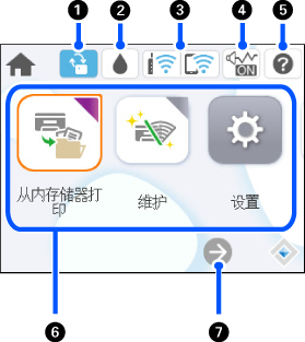表示已为本产品设置了安静模式。启用此功能时,本产品操作期间产生的噪音会减小,但打印速度可能会降低。但是,根据所选打印纸类型和打印质量,噪音也可能不会减小。选择此项可更改设置。 |
