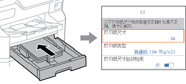 如果您在插入进纸器时显示的屏幕上注册了打印纸尺寸和类型,则当注册信息和打印设置发生变化时,本产品会通知您。这样可避免由于设置与打印纸类型不匹配而使用不正确的打印纸尺寸或错误的色彩进行打印,从而防止浪费打印纸和墨水。