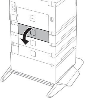 พลิกเครื่องพิมพ์ จากนั้นเปิดฝาครอบด้านหลังของเครื่องพิมพ์