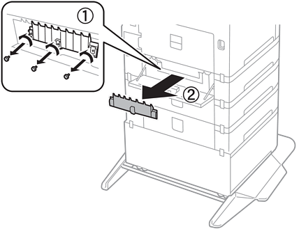 ถอดสกรูยึดโดยใช้ไขควงและถอดฝาครอบด้านหลังที่อยู่ด้านในเครื่องพิมพ์ออก