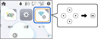 1 按 选择打印机主屏幕上的 Wi-Fi,然后按 OK 按钮。