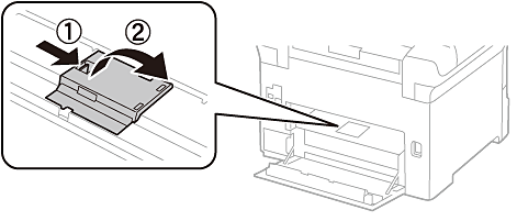 סובב את המדפסת ואז פתח את המכסה האחורי.