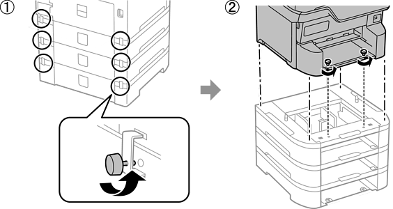 השלם את שלבי ההכנה כדי להזיז את המדפסת, ואז משוך החוצה את מחסניות הנייר 1 עד 4. לאחר מכן, בצע את השלבים המתוארים באיורים הבאים.