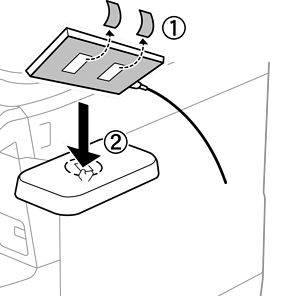 Als u het verificatieapparaat op het plateau wilt laten liggen, leg dan iets diks (zoals gevouwen papier) onder het verificatieapparaat om het apparaat omhoog te brengen. Gebruik echter geen metalen voorwerp of iets dat elektromagnetische golven genereert.