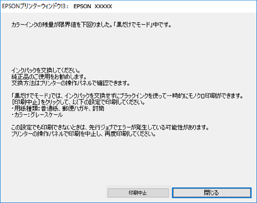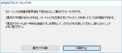 > 困ったときは > インクパックの交換が必要になった > 黒インクだけで一時的に印刷する > 黒インクだけで一時的に印刷を続ける(Windows