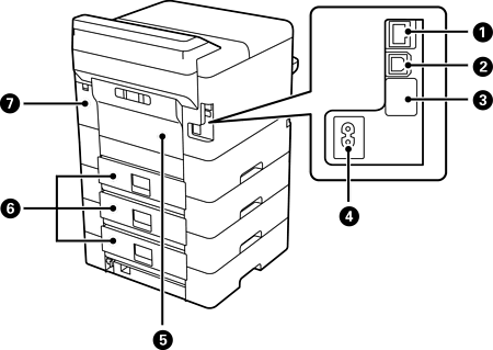 Nodrošina savienojumu ar USB kabeli, lai izveidotu savienojumu ar datoru. |