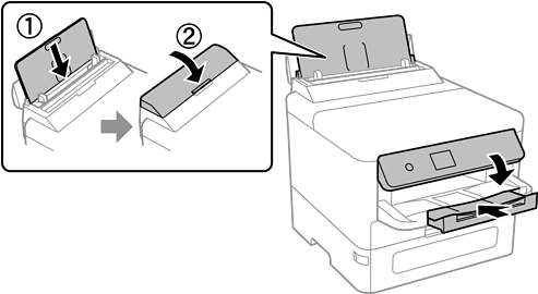 Sagatavojiet printeri iepakošanai, kā parādīts zemāk.