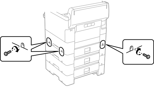 Fäst de valfria papperskassetterna och skrivaren på baksidan och höger sida genom att skruva i skruvarna med en skruvmejsel.