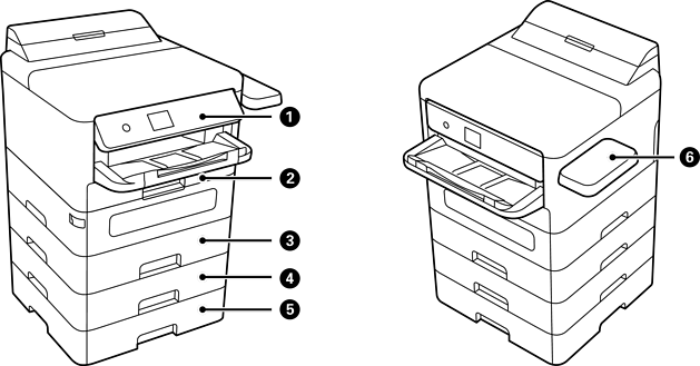 Kitengo cha hiari cha kaseti ya karatasi. Huweka karatasi. Unaweza kusakinisha hadi vitengo 3 vya kaseti ya karatasi. |