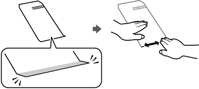 封筒の端部が折れ曲がっているときは、平らになるように手でまっすぐに伸ばしてください。給紙不良の原因になるおそれがあります。