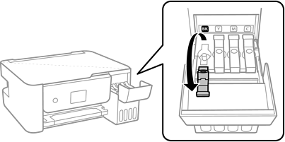 インクの注入が完了したらボトルを抜いて、インクボトルのキャップを確実に締めます。