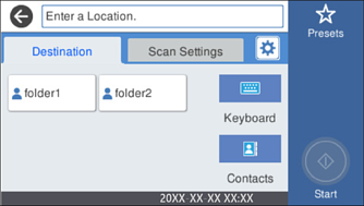 Можете да проверите местоназначението преди сканиране. Изберете Настройки > Настр. на скенера, след което активирайте Потвърждаване на получател.