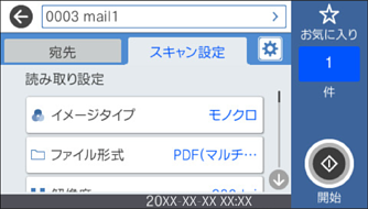 事前にスキャナーの[日付/時刻]と[時差]が正しく設定されていることを確認してください。操作パネルで[設定]-[基本設定]-[日付/時刻設定]の順に選択します。