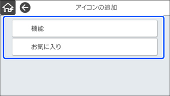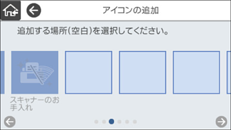 スキャナーの操作パネルで、[設定]-[ホーム画面編集]-[アイコンの追加]の順に選択します。